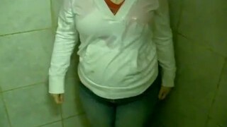 Horny wife Priya's yam-sized Boob press in hotel bath. She told story of boobs fondled by colleague in college ! Slowmo Part 3of4! F20