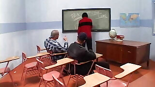 Hot orbs black chick in classroom sucking and fucking teacher's black dong