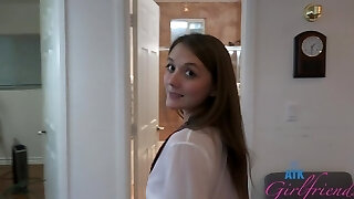 POV video of desirable girlfriend Audrey Hempburne giving head and riding