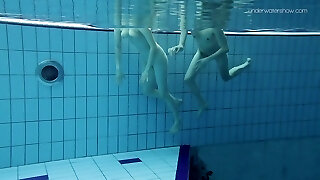 Cute teenie chick Anna Netrebko swims naked with her GF