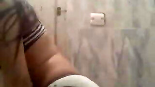 Tanned slender harlot Suzanne deep-throats a dick joyfully through WC glory hole