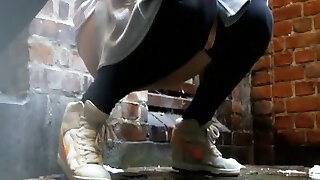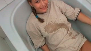Alone muddy whore with slender legs Puppy teases her wet stinkin' pussy