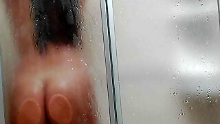 shaving my beaver in the shower while smearing myself with soap