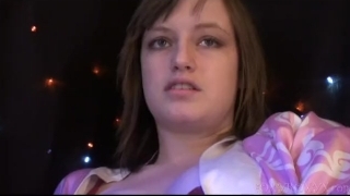 Babe shows off her yam-sized boobs and fucked