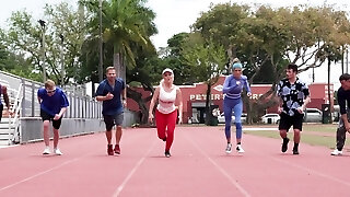 Hardcore fucking after running makes steaming blonde Tiffany Fox cum