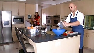 Lustful black-haired hottie with big boobs Alison Tyler had lovely sex at her kitchen