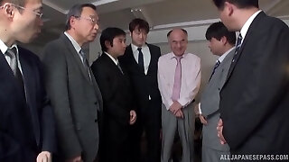 Japanese office girl gives a sucky-sucky to some dude in a public place
