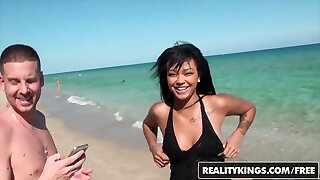 Beautiful auburn hottie Kenzie Reeves gets picked up and decently beaten
