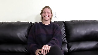 Insatiable ash-blonde woman, Maxim Law is getting fucked during a job interview, on the couch