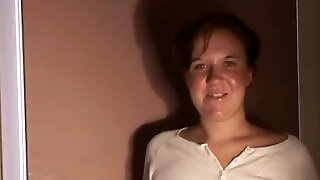 Amateur chubby wife is fucked by bony husband in the bathroom
