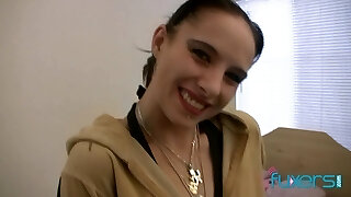 Young sweetheart Francys Belle attempts to cope with a huge dick in her throat