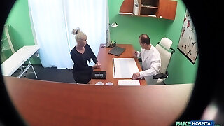 Curvaceous blonde doll climbs on her doctors large cock for a wild ride