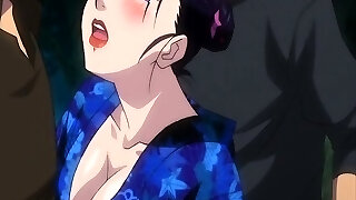 Hentai geisha gets group-fucked and facialed outdoors