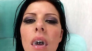Dark Haired Alyssia Kent moves her dress for a long and strong pipe