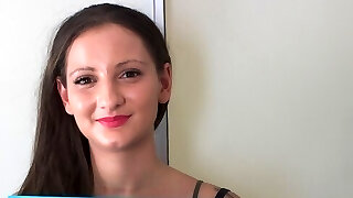 Petite Barely Legal yr old brunette with perky tits sucks cock